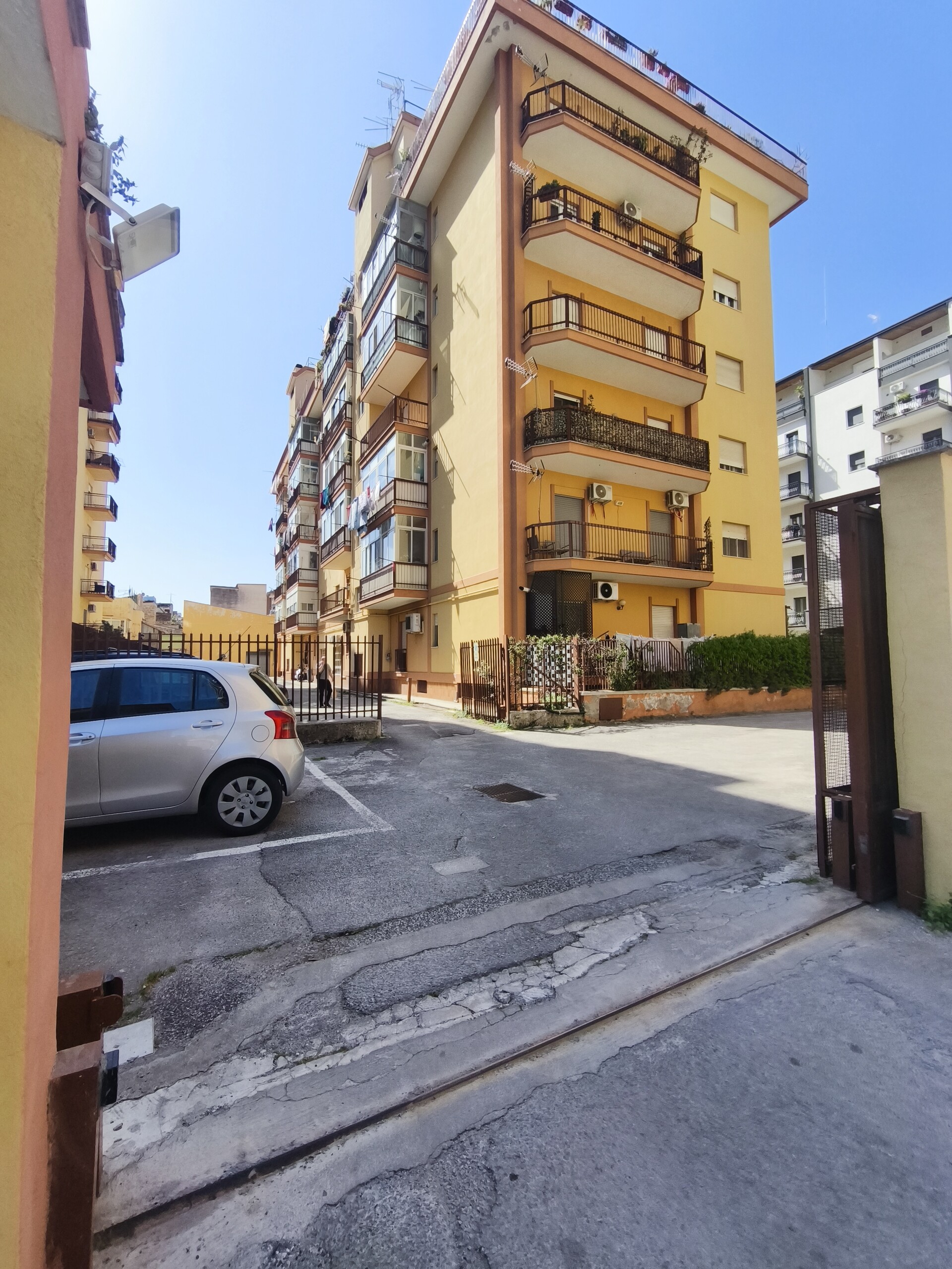 L’appartamento si trova all’interno di un residence realizzato a metà degli anni ’70, dotato di servizio di portierato e area parcheggio con posto auto assegnato e numerato.